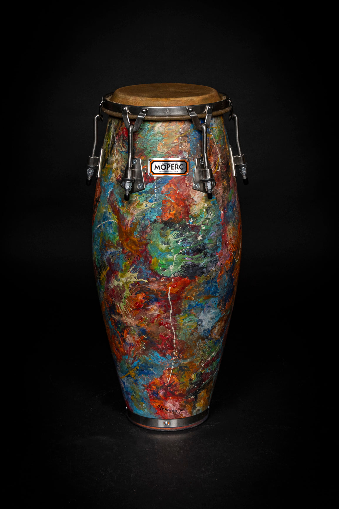 9" quinto designed for maximum high-end range with immediate response. The shell features original artwork by Andrés Mercier, giving this drum a unique visual identity that can’t be replicated. Equipped with a premium Italian skin head, it offers crisp articulation, quick rebound, and bright, precise tone in the upper register.