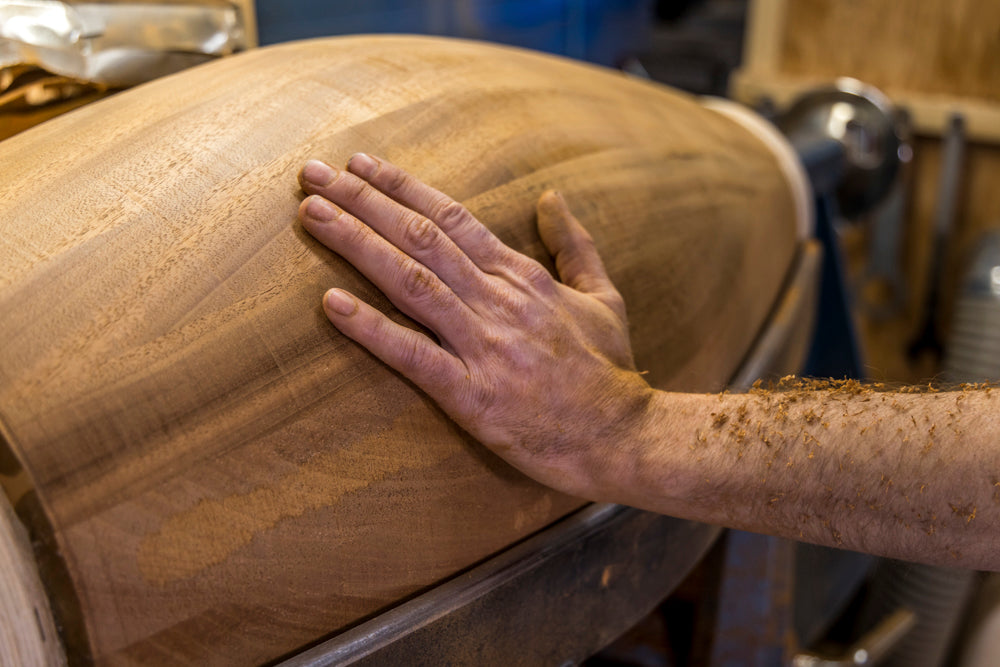 Every drum from the MOPERC shop is made from solid, quarter-sawn (not steam bent) staves and because the staves are cut to precise angles, glue is minimally used to join them together, an important factor in creating that distinctively pure MOPERC sound.