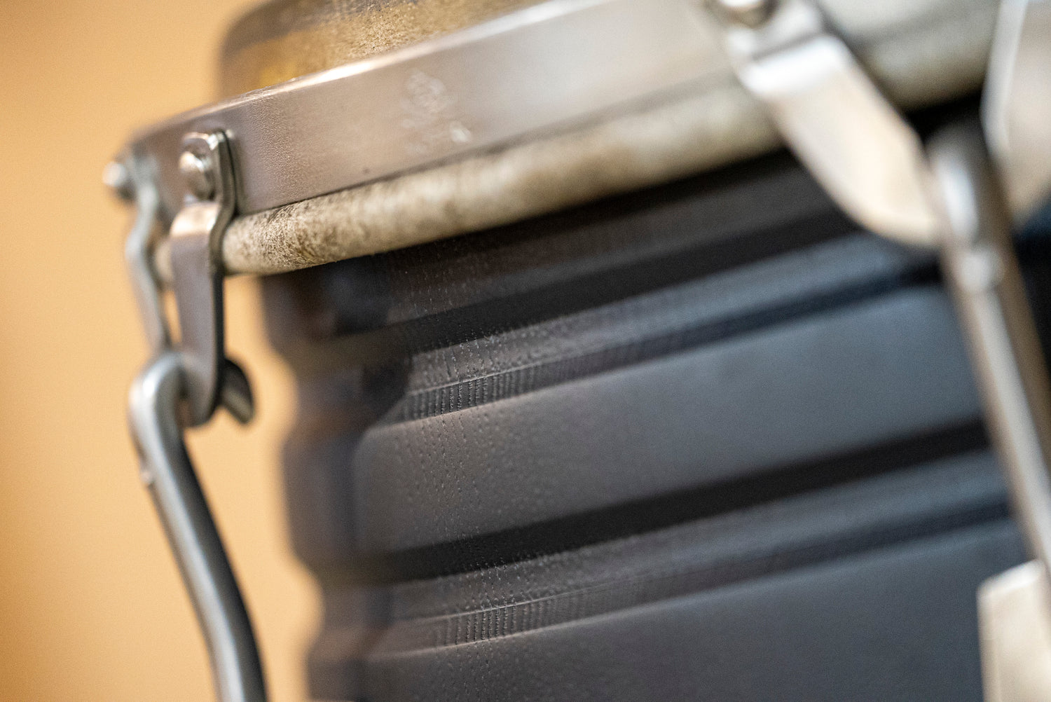 When the discussion turned to color, the conversation took a dark turn. Very dark. Many will remember that Eric’s stunning first set of MOPERCs were Custom Cubanos, stained black. And, as much as he loves the color, he wanted his signature drums to be way, WAY MORE BLACK. So, between Francis and Michael, they suggested a technique, new to MOPERC, of letting black stain rest on the shell for a longer period, allowing it to penetrate more deeply into the grain, before wiping it down.