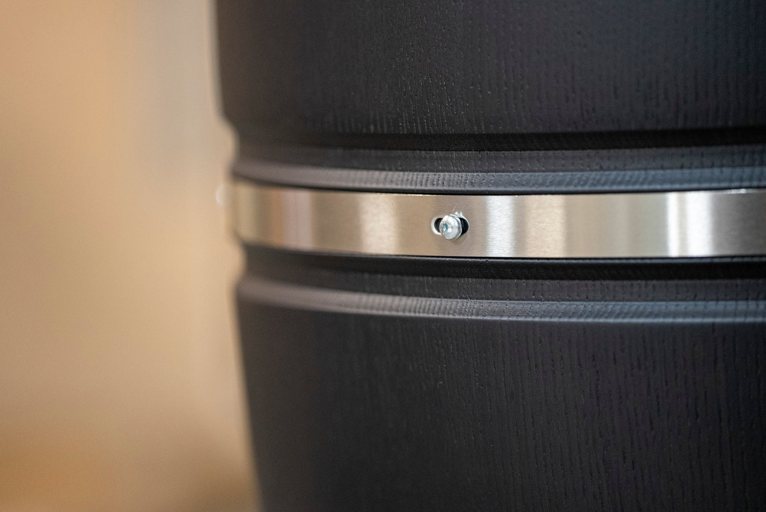 Once dry, the drum is then finished with a matte varnish that reflects minimal light, resulting in the most vivid black imaginable. A black so deep that you’d swear it goes through the entire stave.